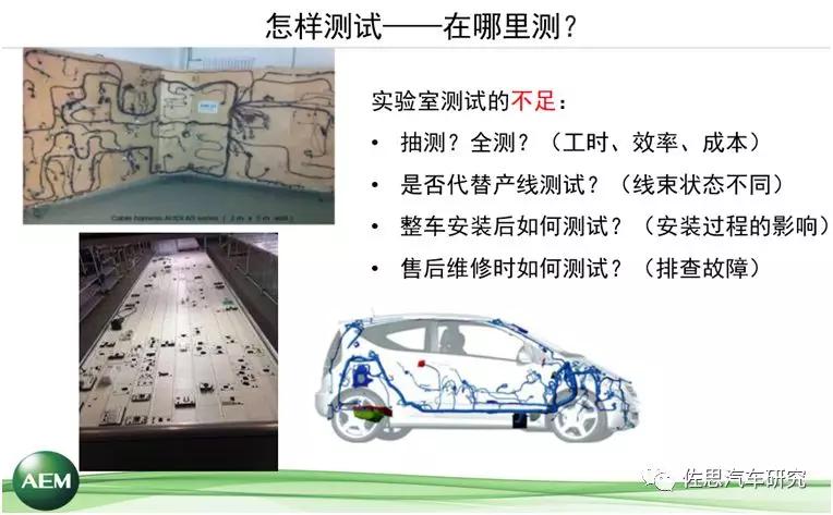 從目前的技術(shù)水平來講,線束在整車內(nèi)的布放仍然依靠全手工完成,發(fā)動機(jī)、車體、其他的焊接都可以用機(jī)器人來完成。布線這個(gè)工序是由操作人員手工完成的,由人來完成的事情就有可能出現(xiàn)錯(cuò)誤,或者出現(xiàn)影響,而這個(gè)影響是在實(shí)驗(yàn)室無法模擬出來的。